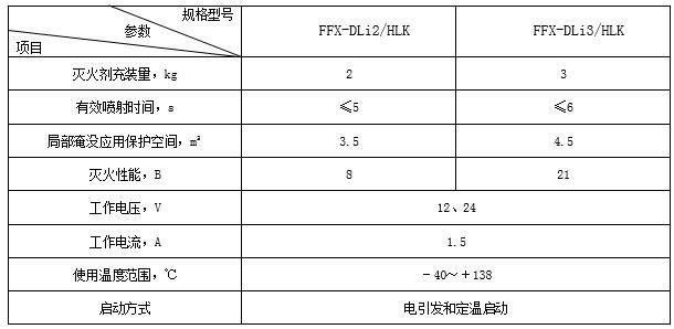 車用鋰電池箱D類干粉自動滅火裝置主要技術參數(shù)