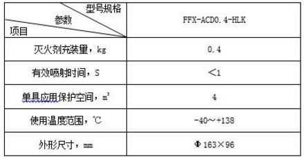 發(fā)動機艙用超細干粉自動滅火裝置主要技術參數(shù)