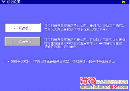 在氣體噴灑允許狀態(tài),氣體滅火設(shè)備才可以被手動(dòng)啟動(dòng)和自動(dòng)聯(lián)動(dòng)。否則啟動(dòng)氣體滅火設(shè)備的聯(lián)動(dòng)條件成立后,氣體滅火設(shè)備不會(huì)被啟動(dòng);手動(dòng)啟動(dòng)氣體滅火設(shè)備時(shí),沒有響應(yīng)。