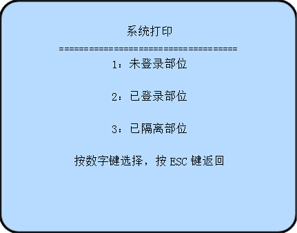 在主菜單下,按“4”進(jìn)入系統(tǒng)打印菜單,顯示如下: