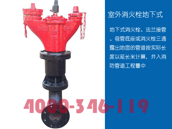 地下式:地下式消火栓、法蘭接管、彎管底座或消火栓三通 露出地面的管道按實(shí)際長(zhǎng)度以延長(zhǎng)米計(jì)算,并入消防管道工程量中! 管道安裝按設(shè)計(jì)管道中心長(zhǎng)度,以“m”為計(jì)量單位,不扣除閥門、管件及各種組件所占長(zhǎng)度